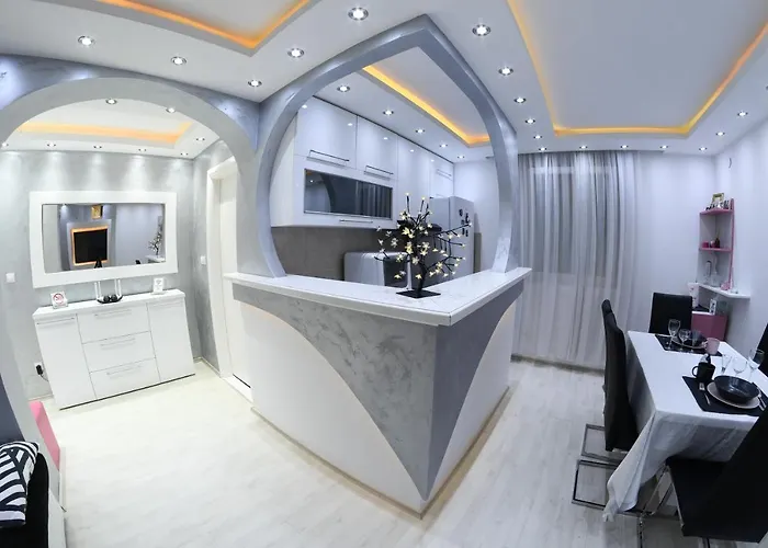 Az 55 m^2-es Apartment "Mastef" Belgrád Belgrád Zvezdara körzetében található, és magába foglal egy teraszt, amelyről kilátás nyílik a kertre. Az A fehér palota 4 km-es távolságra, a Bregalnicka buszmegálló pedig csaknem egy 10 perces sétára van az ingatlantól.